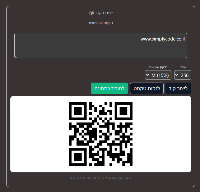 QR Code Generation ליצור קוד QR